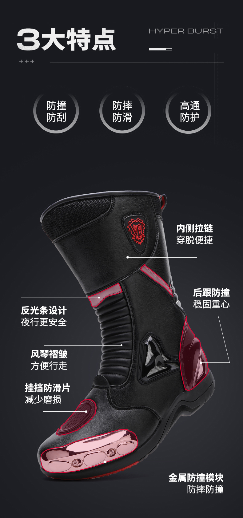 D3113丹尼斯同款摩托车装备骑行鞋钛合金男女骑行靴机车防摔四季赛车靴