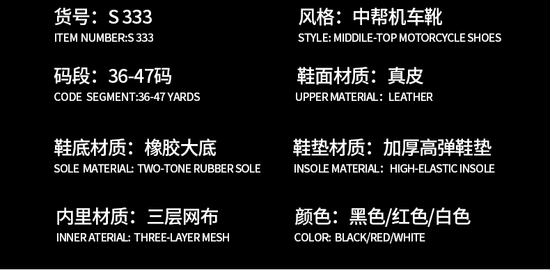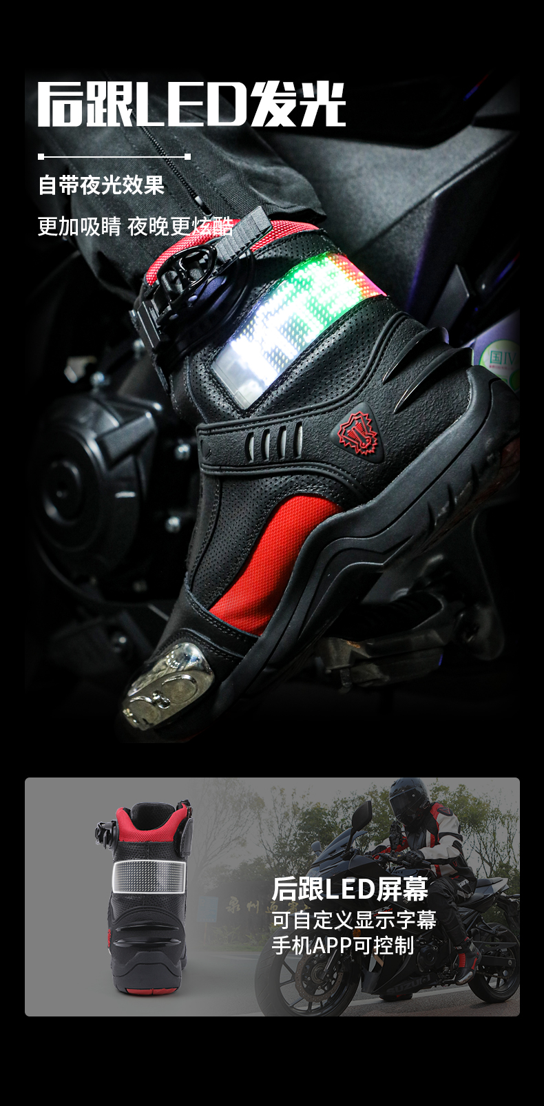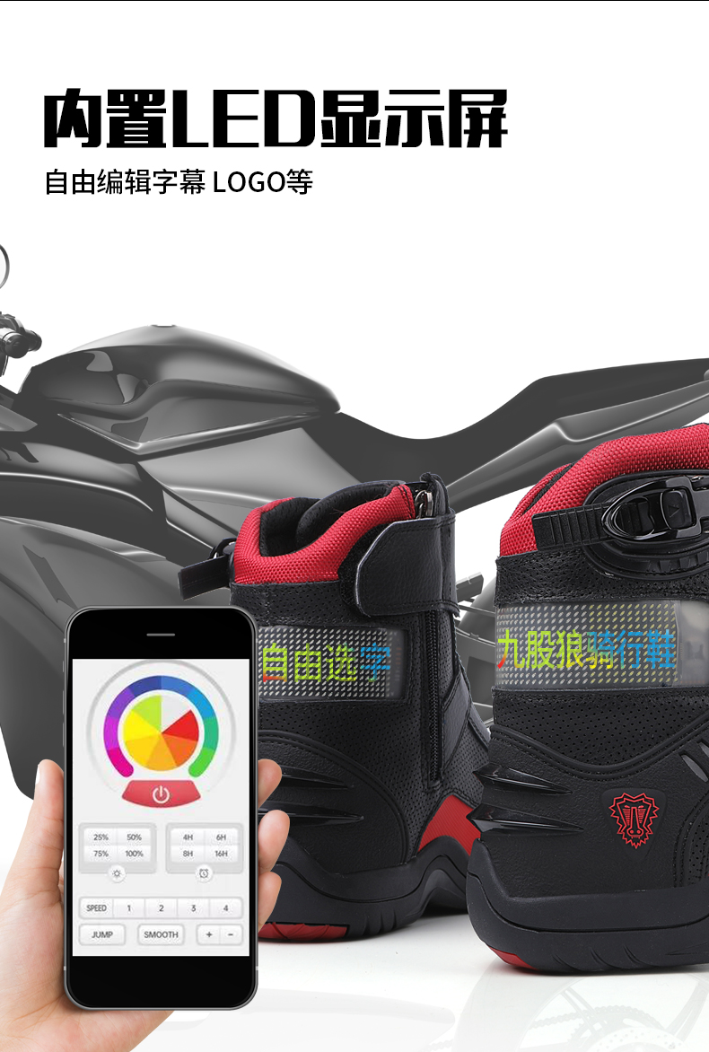 333摩托车骑行鞋男子LED智能显示发光字摩旅骑士装备