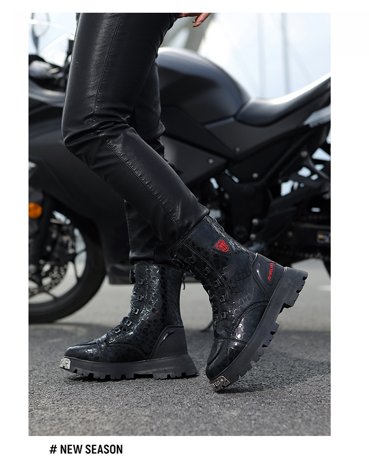 221新款摩托车骑行鞋男士加厚板鞋真皮拉力靴四季防寒防摔透气赛车靴