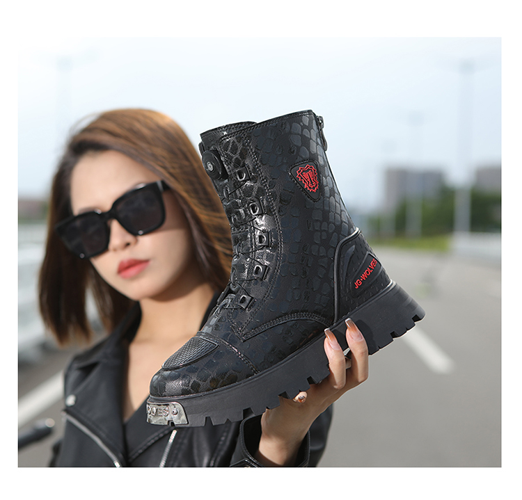 D99四季骑行马丁靴子休闲摩托车越野厚底增高皮面通勤骑行鞋机车女鞋